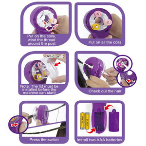 Facile à utiliser : guidez simplement vos cheveux à travers le trou rond de la machine, appuyez sur l'interrupteur et vous obtenez une tresse colorée unique en quelques secondes. Laissez votre fille créer une coiffure unique.
