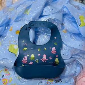Bavoir en silicone beau et pratique avec un récipient pour les restes de nourriture. Bavoir ajustable et pratique pour les tout-petits essayant de manger de façon autonome. Vous pouvez essuyer le bavoir en un rien de temps avec un chiffon humide. Le Silicon ne peut pas absorber l'humidité ou les résidus de nourriture, le bavoir est donc super stérile. Sans BPA. Le bavoir convient aux enfants de 2 à 5 ans.