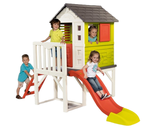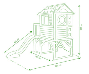 Vos enfants grimperont à l’échelle pour rejoindre leur cabane, où ils pourront s’amuser avec le toboggan ou imaginer des histoires sur la terrasse.