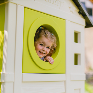 3 fenêtres et 2 volets coulissants pour jouer à cache-cache et surveiller tout le jardin.