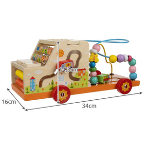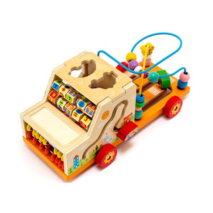 Un magnifique camion multi-activités en Bois qui stimulera l’imagination, la créativité et la motricité fine des enfants.