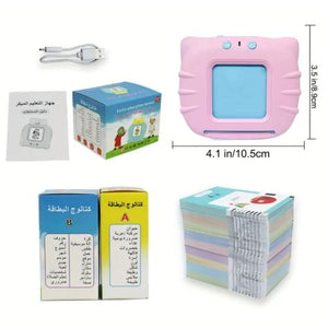 Découvrez une manière captivante et éducative d’enseigner aux enfants de 2 à 6 ans avec notre Lecteur de Cartes Flash pour Enfants Portable. Cet outil innovant est conçu pour rendre l’apprentissage de nouveaux mots en arabe et en anglais amusant et interactif. Avec 112 cartes recto-verso, nos cartes flash présentent des images vibrantes et des mots dans les deux langues de chaque côté, offrant un total de 224 mots à explorer.