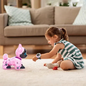 Le chien robot télécommandé offre un plaisir sans fin aux enfants. Cet adorable chiot est contrôlé par une montre à distance, permettant aux enfants de le conduire facilement en avant, en arrière, à gauche, à droite et même d'effectuer des cascades à 360°. Idéal pour ceux qui veulent un chien de compagnie sans soucis d'allergie, le chien robot est fabriqué en PVC et ABS de haute qualité et durables, avec une surface lisse, garantissant la sécurité de la peau des enfants.