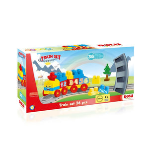 Circuit train contenant au total 36 pcs de la marque DOLU, avec des blocks de construction colorés à assembler de manière simple et instructif pour l’enfant.