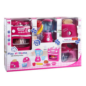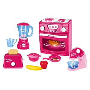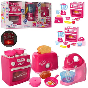 Ensemble d'appareils électroménagères comprenant : une gazinière, un blender, un batteur avec bol et un grille pain.
