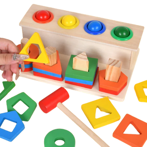 Formes géométriques et boule de marteau est un jouet éducatif qui vise à développer des compétences essentielles chez l'enfant. Il contribue à améliorer la stimulation sensorielle, la concentration, la reconnaissance des couleurs et des formes, ainsi que la motricité fine de l'enfant.