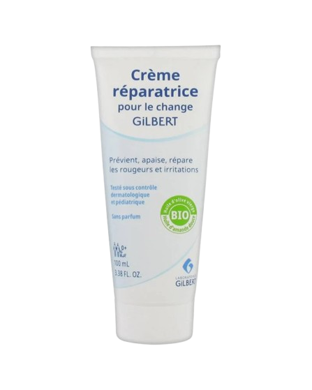 La crème réparatrice pour le change des Laboratoires Gilbert est adaptée à bébé dès la naissance. Elle prévient et répare la peau de bébé des irritations causées par le siège.