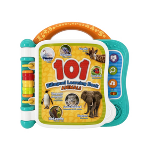 Livre d'apprentissage interactif et bilingue ( Français-Anglais ) qui enseigne 101 animaux en deux langues.