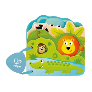 Un magnifique livre en bois sur le thème des animaux sauvages pour votre enfant.