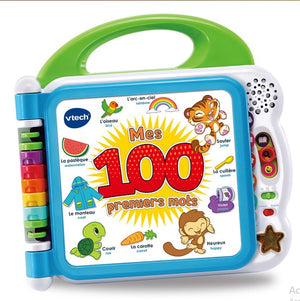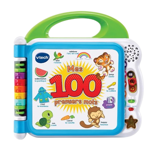 Dès 18 mois, votre enfant peut démarrer l'apprentissage de l'anglais grâce à notre livre parlant français -anglais pour apprendre 100 mots de vocabulaire avec les personnages "Les Petits écoliers"
