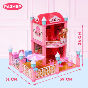 Cette maison de rêve pour fille comprend 2 étages, 3 pièces créatives à décorer, dont une chambre à coucher, une cuisine et une grande terrasse. La maison mesure 39 cm de long, 31 cm de large et 36 cm de haut.