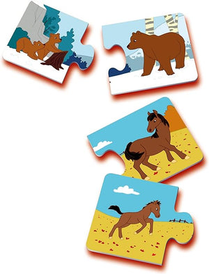 Grâce aux pièces de puzzle autocorrectives, les enfants jouent à réunir les petits et les mamans en toute simplicité et peuvent vérifier eux-mêmes s’ils ont correctement associé les images.