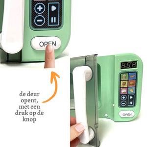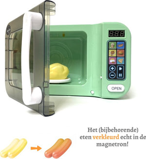 Votre enfant adore jouer au chef, mais possède-t-il déjà tous les ustensiles de jeu habituels ? Nous avons une solution pour vous ! Notre micro-ondes miracle surprendra certainement votre tout-petit, car l'ensemble est livré avec des produits jouets qui changent de couleur lorsqu'ils sont « cuits ».