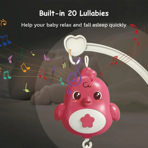 Mobile mignon pour berceau de bébé avec projection d'étoiles musicales - Rose