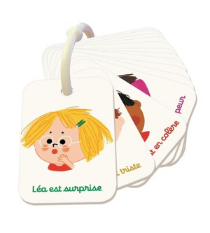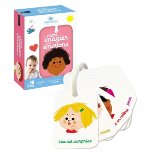 Ce premier imagier des émotions de Nathan contient 20 cartes présentant chacune l’image d’une émotion de l’enfant. Reliées par un anneau, elles sont faciles et amusantes à manipuler, comme un trousseau de clés. Surprise, tristesse, colère, peur… votre enfant regarde chaque visage et son expression pour apprendre à nommer ses émotions et celles des autres. Une première étape fondamentale pour réguler ses émotions !