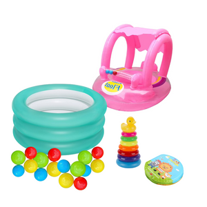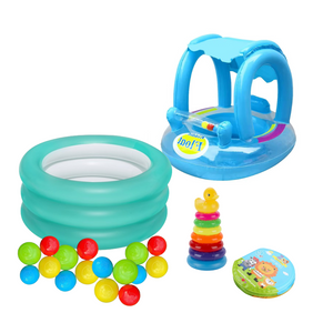 Pack de plage ( Piscine + 10 balles colorées + Bouée + Tour arc en ciel + Livre de bain)