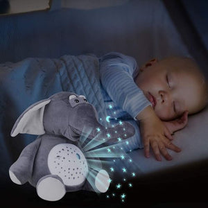 Imaginez : un éléphant brille doucement avec des étoiles, joue doucement des mélodies apaisantes et le bébé s'endort sous sa douce surveillance.