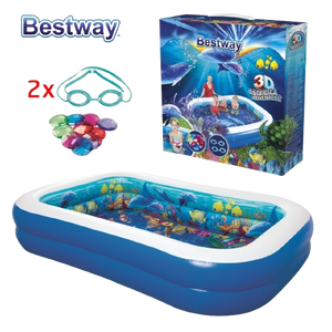 Vos enfants pourront profiter d'une aventure sous-marine magique avec cette incroyable piscine gonflable de Bestway. Grâce à sa construction en poutre I en vinyle de haute qualité, cette piscine est robuste et durable et peut contenir jusqu'à 778 litres d'eau. La piscine est conçue avec des parois latérales extra-larges pour plus de stabilité. Cette piscine peut être rapidement gonflée et dégonflée. Mettez les lunettes 3D et admirez le magnifique monde sous-marin et les trésors de cristal devant vos yeux ! La livraison comprend 1 piscine, 2 paires de lunettes 3D et 1 paquet de cristaux.