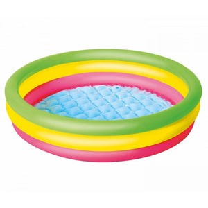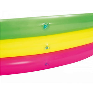 Lapiscine gonflable de Bestway se compose de 3 anneaux. Chacun d’eux est décoré dans une certaine couleur: vert, jaune et rose, ce qui n’affectera que positivement l’humeur de l’enfant. Le fond gonflable rendra le séjour dans la piscine plus confortable et apportera une sécurité supplémentaire en nageant.