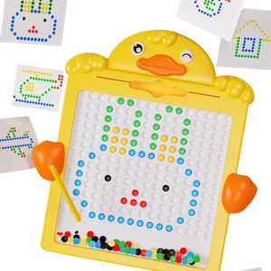 Un excellent jouet pour les moments calmes et éducatifs, aide à réduire le temps d'écran et encourage les enfants à pratiquer la résolution de problèmes et à stimuler l'imagination. Comprend 10 cartes avec 20 idées de motifs qui peuvent glisser dans et hors du plateau pour que les tout-petits aient un motif assorti aux aimants.