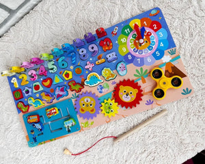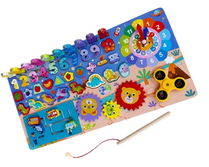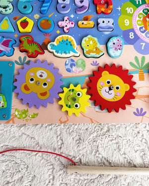 Cette planche Montessori en bois est conçu pour aider les enfants à apprendre les chiffres, les couleurs, l'horloge ainsi que d'autres jeux de manière ludique. Les pièces du puzzle sont faciles à manipuler et les couleurs vives les rendent attrayantes pour les enfants. Ce produit est adapté à tous dès 3 ans et favorise le développement de la motricité fine, la coordination œil-main et la concentration.