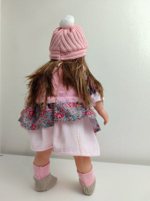 La poupée est en plastique compressé avec des cheveux et des yeux clairs et portant des vêtements d'hiver en laine. Les parties des épaules et des hanches de cette poupée sont articulées, ce qui rend les bras et les jambes mobiles.