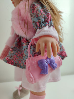 Avec la poupée, il y a un peigne, un petit sac à main et un magnifique sac à bandoulière.