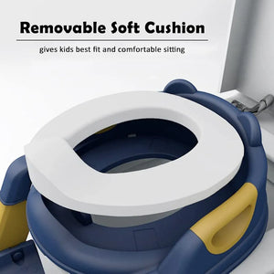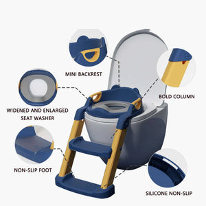 MATÉRIAU ECO-RESPONSABLE, CONCEPTION SÛRE - ROBUSTE - CONFORTABLE : Notre réducteur de toilettes est conçu avec un plastic adapté à l'usage des enfants (sans BPA). Il est équipé de gommes antidérapantes au sol et à la surface de contact avec le WC. Ceci le rend très stable et capable de supporter jusqu'à 75 kg. Le mini dossier permet à l'enfant de garder une bonne posture, protégeant ainsi son dos. L'assise est un coussin souple avec une propriété antifroid en hiver.