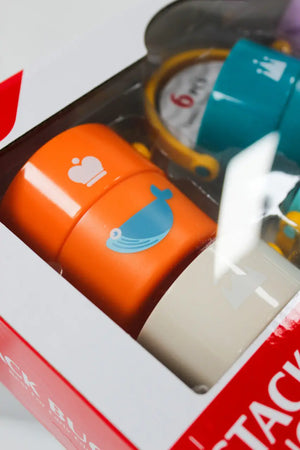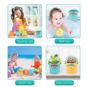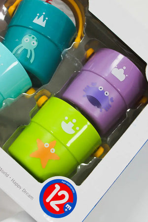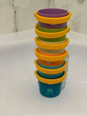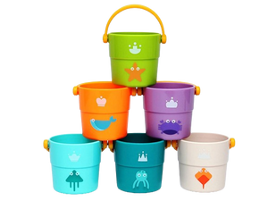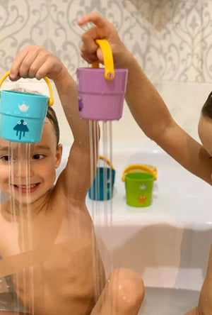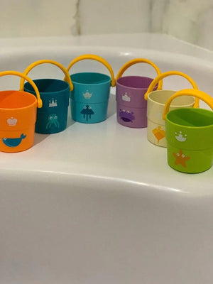 Les seaux empilables sont considérés comme un magnifique jeu de bain pour éveiller les premiers sens de votre bébé.