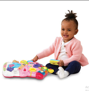 Dans un premier temps, il joue avec le tableau d’activités au sol. Il découvre les formes, les couleurs, les chiffres ou encore les animaux grâce au téléphone amovible, aux touches de piano lumineuses et aux formes à trier. Quand Bébé grandit, le trotteur l’aide à faire ses premiers pas et s’adapte à son rythme grâce au système de freinage des roues.