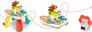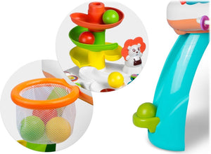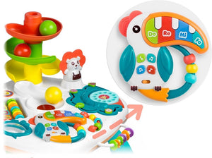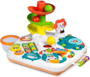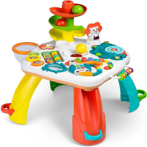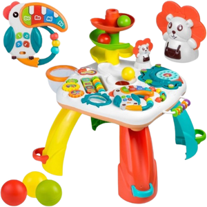 solide et durable, montage simple et rapide, piano stable et extensible, panier amovible pour balles, grand toboggan pour balles, il peut servir de table et de plateau pédagogique, comprend 3 balles