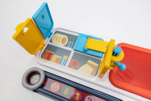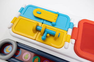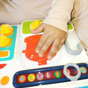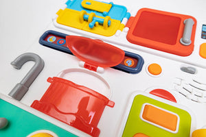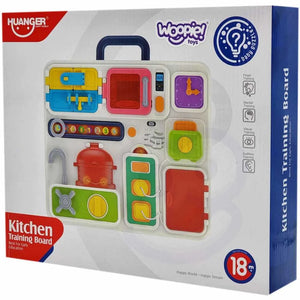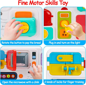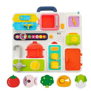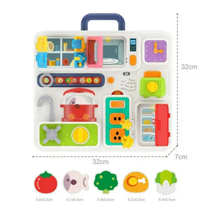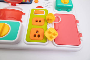 Les enfants sont toujours intéressés par la cuisine des adultes. grâce a ce tableau, votre tout-petit peut utiliser les ustensiles de cuisine (armoires, fours à micro-ondes, machines à pain, réfrigérateurs, cuisinières à gaz, robinets, horloges, lumières, etc.) tout en profitant des mélodies animées. Excellents jouets de motricité fine pour les tout-petits, il aide à cultiver les compétences cognitives et sensorielles des enfants, développer les compétences motrices fines, la capacité d'observation, la coordination œil main et les compétences de base de la vie, etc.