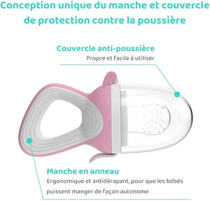 Son réservoir en silicone apaisera les douleurs liées à la poussée dentaire et favorisera sa flore intestinale grâce aux fruits frais qu’il mâchouillera.