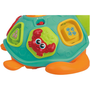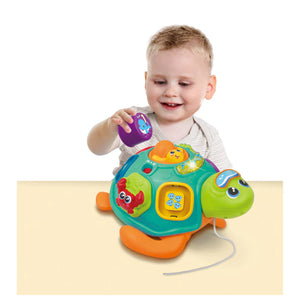 Le jouet tortue avec tri de formes et blocs colorés est un jouet éducatif et interactif, parfait pour développer la motricité fine et comprendre les concepts de base. Trier les formes active les lumières, les sons amusants, les mélodies et stimule les sens et la curiosité de l'enfant. En appuyant sur la grenouille au milieu du jouet, les blocs colorés sauteront, enseignant ainsi à votre tout-petit le concept de cause à effet de manière amusante et interactive.