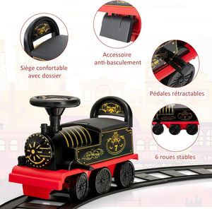 - Confort et sécurité d'utilisation: Le siège large et confortable et le dossier ergonomique permettent aux enfants de jouer joyeusement sans aucune gêne. En outre, nos trains électriques sont équipés de pédales rétractables qui peuvent être facilement réglées pour s'adapter aux besoins de l'enfant. Fabriqué à partir de matériaux de haute qualité, le train-jouet est doté de six roues antidérapantes et d'un dispositif anti-basculement pour plus de sécurité.