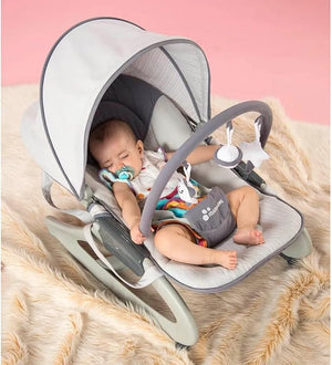 Ce magnifique transat dispose de 3 positions : assis, semi-allongé et allongé, et en fonction de l’âge de votre bébé vous pourrez adapter sa position. Il dispose également d’une arche d’éveil qui permettra à votre bébé de jouer.