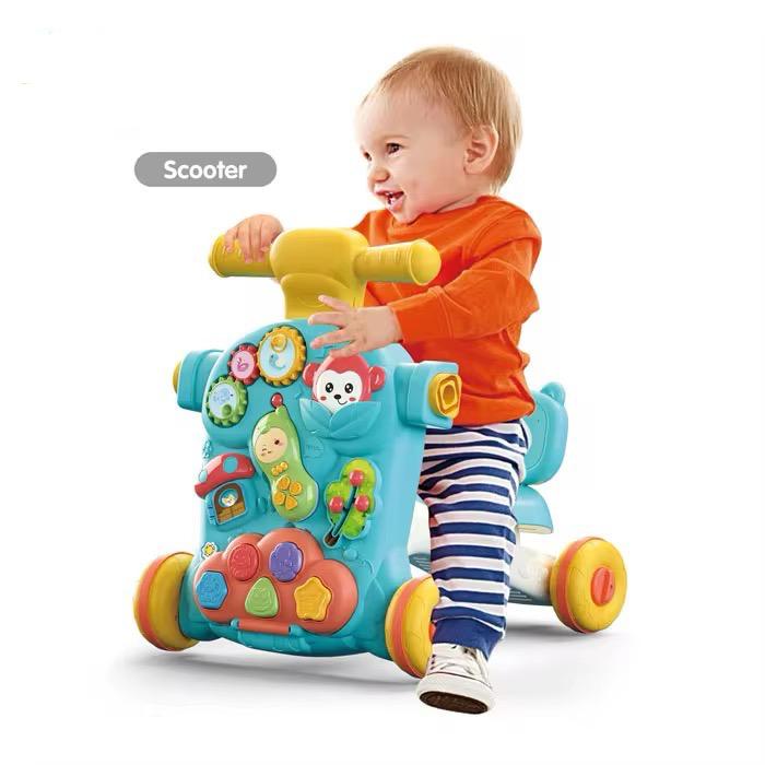 Siège ou première poussette : le trotteur intègre un siège pour permettre à l'enfant de s'asseoir et de jouer, ou peut être utilisé comme première poussette pour promener une poupée.